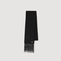 Wool scarf adorned with long fringes at both ends and a metal plaque with engraved logo. - Sandro Accessory wool scarf - Long fringes - Metal logo - Dimensions: 278 cm x 20 cm Reference: SHABO01074 COMPOSITION & CARE Composition - Main material: 100% wool Care advice - Do not wash - Do not bleach - Do not tumble dry - Iron at a maximum temperature of 110°C without steam - F/ - Professional dry clean, with hydrocarbon solvent, gentle treatment