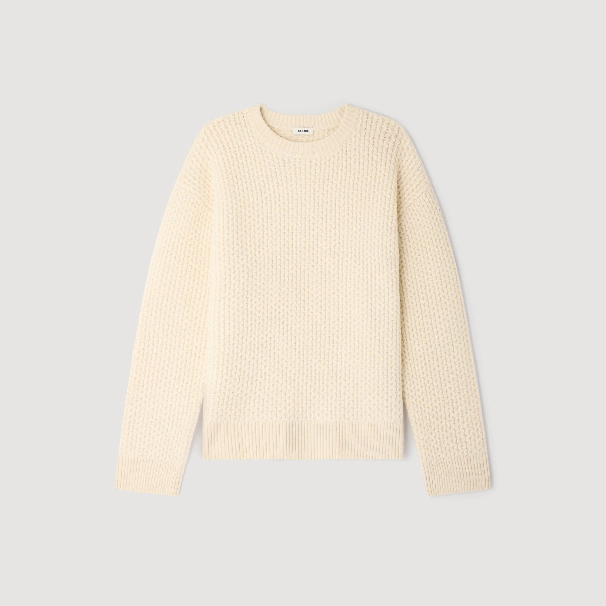 Fine knit sweater with round neck and long sleeves. - Sandro Men's fine knit sweater - Round neck - Long sleeves - Honeycomb stitch - Plain appearance - True to size Reference: SHPTR00693_A127 COMPOSITION & CARE Composition - Main fabric: 100% wool Care advice - Hand wash - Do not bleach - Do not tumble dry - Iron at a maximum temperature of 110°C without steam - F - Professional dry clean, with hydrocarbon solvent, normal treatment