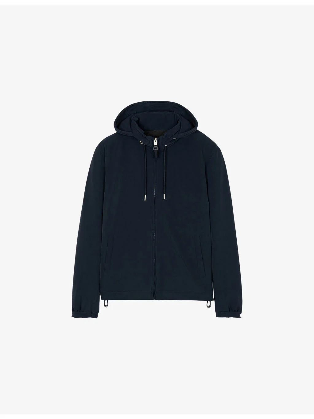 PRODUCT DETAILS - Sandro stretch-woven jacket - 96% polyamide, 4% elastane - Zip fastening - Regular fit, high neck, hood, long sleeves, side pockets - Dry clean - True to size - Heavyweight, slight stretch Ref: R04411956