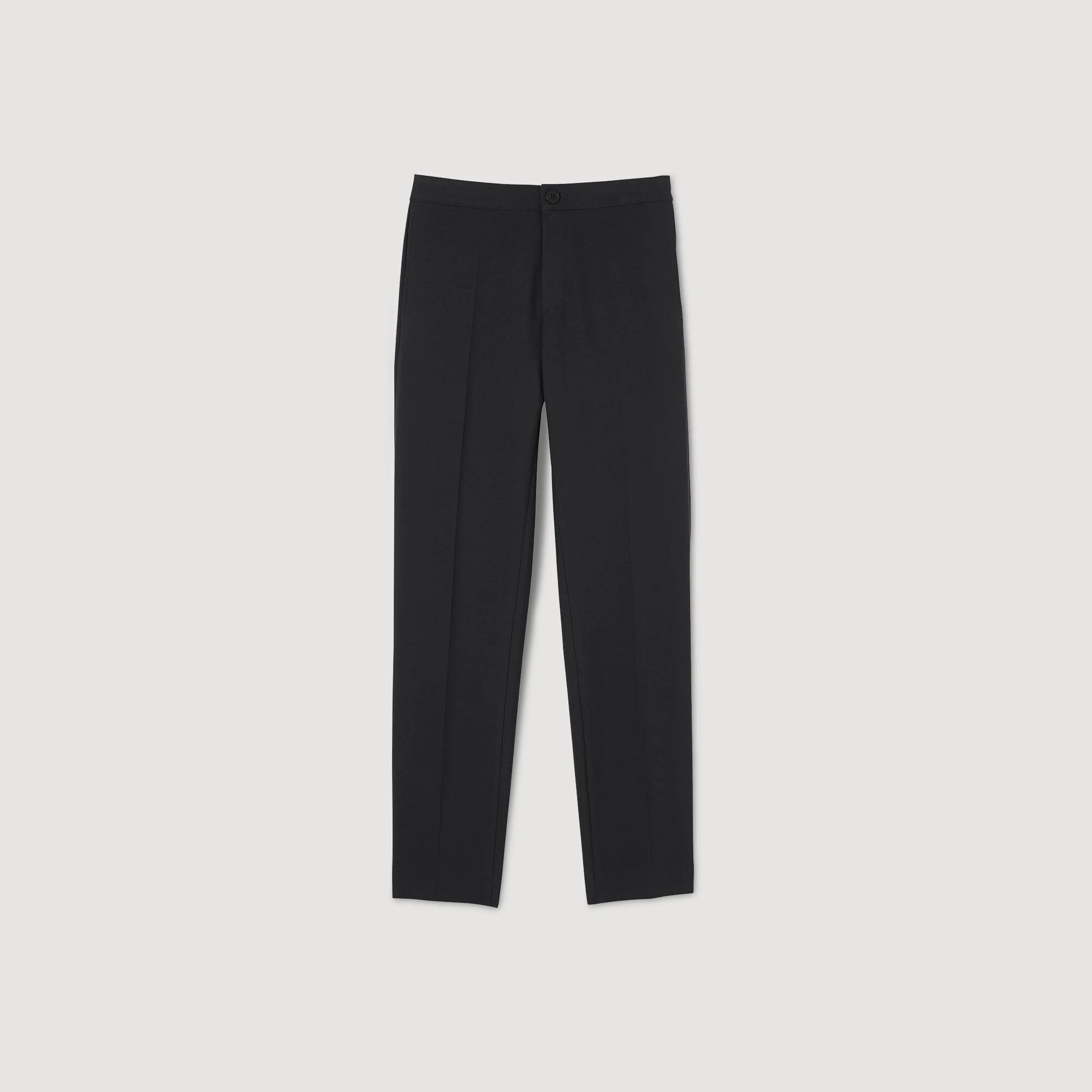 Sandro men’s pants • Jersey pants • Button fastening at the front • Elasticated waist at the back • Slanted pockets at the front • Two piped pockets at the back • The model is wearing a size 38 The model is 189 cm / 6'2 tall and wears a size 38 / 10 UK COMPOSITION Main fabric: 68% polyester, 28% viscose, 4% elastane Pocket lining: 100% cotton Reference: SHPPA00609_20