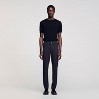 Sandro men’s pants • Jersey pants • Button fastening at the front • Elasticated waist at the back • Slanted pockets at the front • Two piped pockets at the back • The model is wearing a size 38 The model is 187 cm / 6'1 tall and wears a size 38 / 10 UK COMPOSITION Main fabric: 68% polyester, 28% viscose, 4% elastane Pocket lining: 100% cotton Reference: SHPPA00609_240