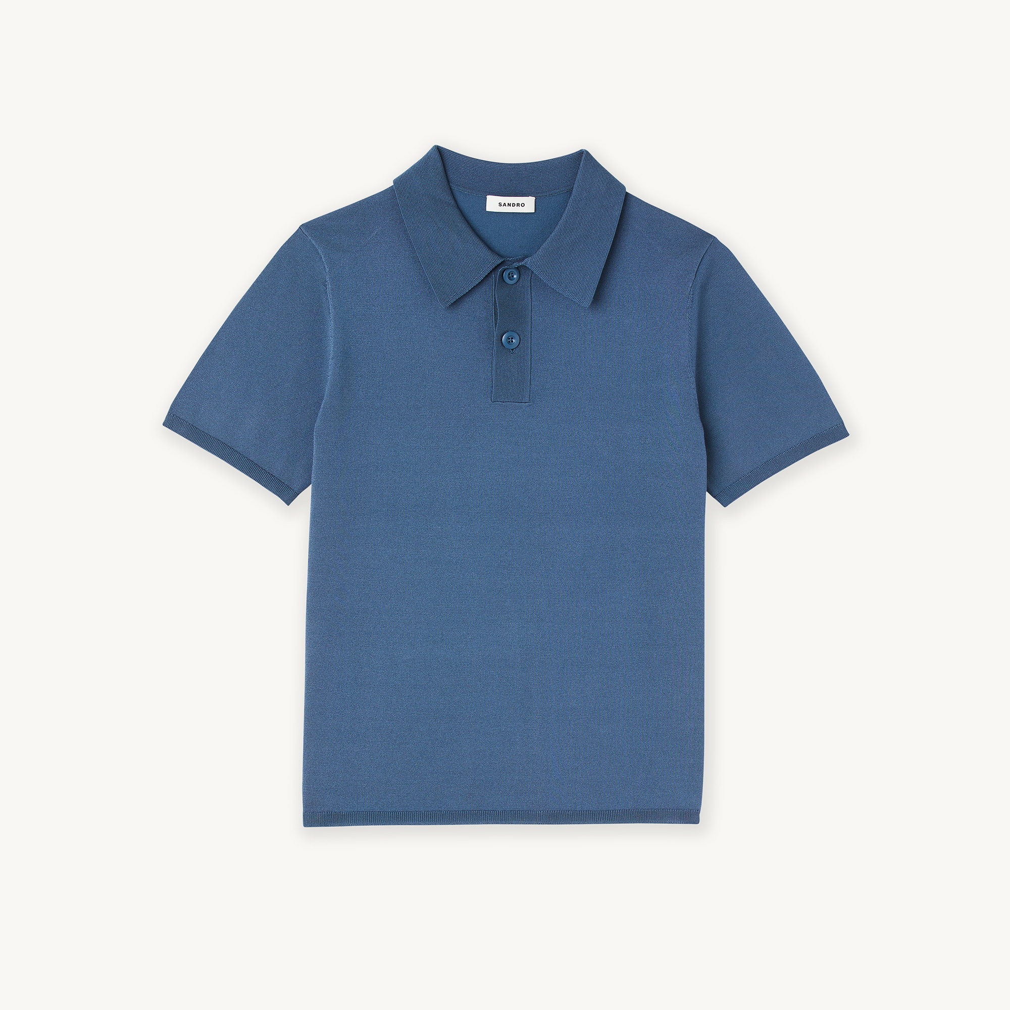 Sandro men's polo shirt • Knitted polo shirt • Polo collar • Fastened with two buttons at the front • Short sleeves • Regular fit • Model is wearing a size S and measures 6'1" Reference : SHPTR00382 MATERIALS Main fabric: 82% acetate, 15% polyamide, 3% elastane Collar: 70% acetate, 26% polyamide, 4% elastane