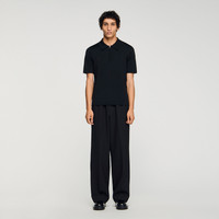 Knitted polo shirt with a zip-up shirt collar and short sleeves. • Sandro Men's knitted polo shirt • Zip-up shirt collar • Short sleeves • Straight cut The model is wearing a size S The viscose in this item is made of cellulose from sustainably managed forests. The model is 189 cm / 6'2 tall and wears a size S / 8 UK COMPOSITION Main fabric: 81% acetate, 16% polyamide, 3% elastane Collar: 83% acetate, 15% polyamide, 2% elastane Rib: 81% acetate, 16% polyamide, 3% elastane Reference: SHPTR00344_20