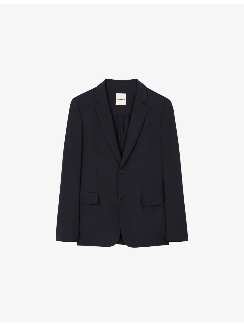 PRODUCT DETAILS - Sandro stretch wool-blend blazer - 66% wool, 30% polyamide, 4% elastane - Exposed button fastening at front - Slim fit, lapel collar, welt pocket at chest, long sleeves, two flap pockets at the side, single breasted - Dry clean - Model is 6ft 2in/1.88m and wears a size UK 40 - Midweight, slight stretch Ref: R04411919