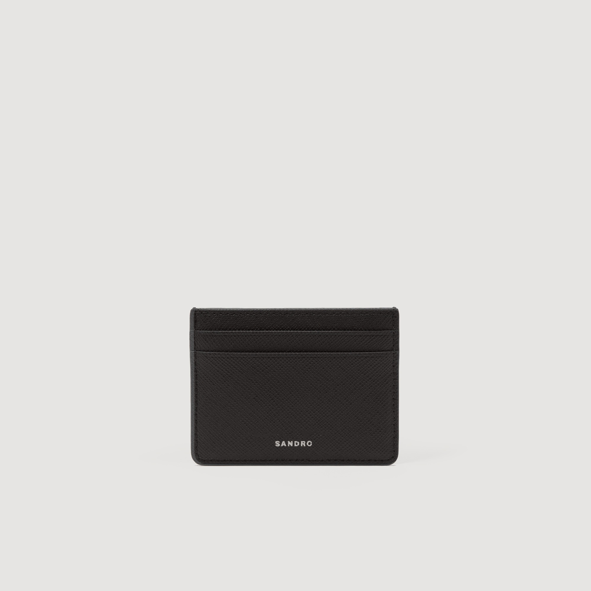Sandro men’s leather card holder • Saffiano leather card holder • Four slots • One compartment • Embossed Sandro logo • Dimensions: 10 cm x 7.5 cm By purchasing this product, you are supporting more responsible leather manufacturing via the Leather Working Group, which certifies tanneries based on their environmental performance (water, energy, waste, etc.) Reference : SHAPM00197 MATERIALS Main material: 100% Synderme Coating: 71% polyester, 29% polyurethane Body lining: 100% cow Pocket lining: 100% polyester