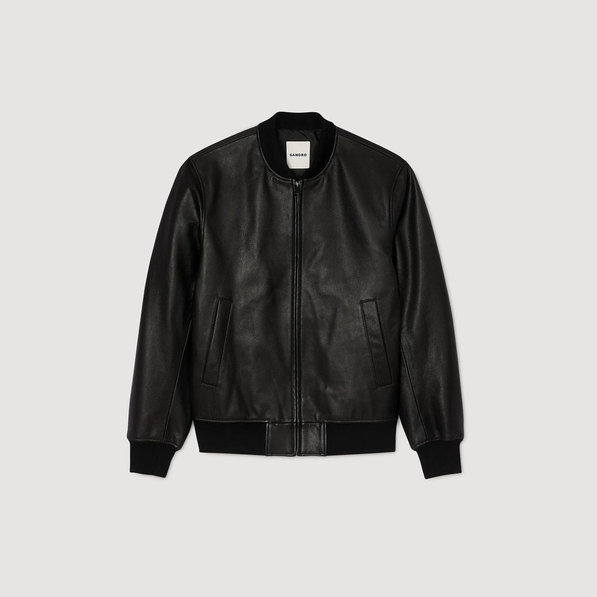 Lambskin leather jacket with ribbed neck, zip fastening and side pockets. - Sandro Men's leather jacket - Crew neck - Ribbed collar, cuffs and waist - Long sleeves - 2 welt pockets - Inner lining - 2 inside pockets Reference: SHPBL01124_20 COMPOSITION & CARE Composition - Leather: goatskin leather - Lining: 100% polyester - Pocket lining: 100% cotton - Rib: 53% cotton, 45% polyester, 2% elastane Care advice - Do not wash - Do not bleach - Do not tumble dry - Do not iron - Do not dry clean