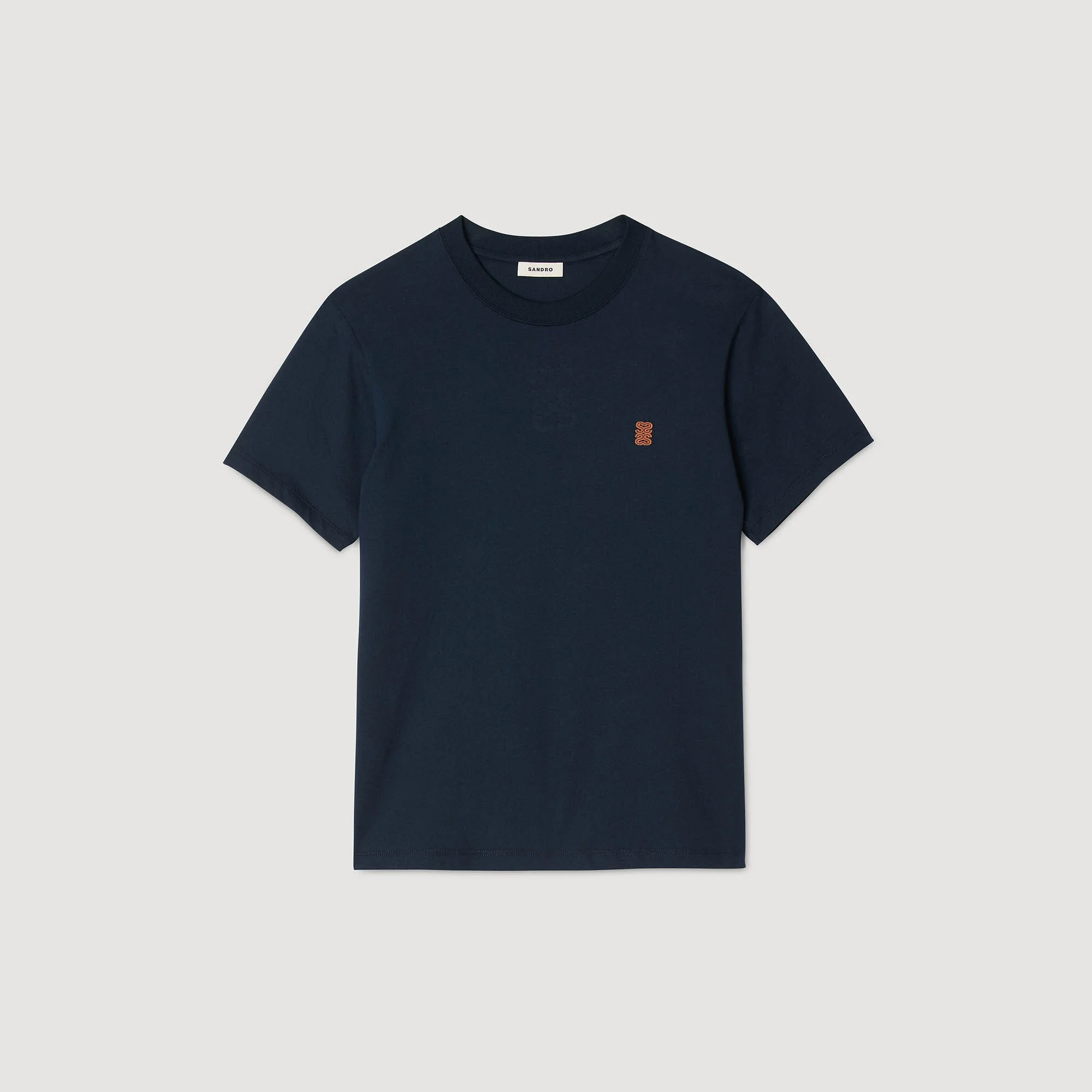 Round-neck, short-sleeved T-shirt with a leather logo patch on the chest. - Sandro Men's cotton T-shirt - Round neck - Short sleeves - Leather logo patch - True to size Reference: SHPTS01670_44 COMPOSITION & CARE Composition - Main fabric: 100% cotton - Rib: 100% cotton Care advice - Gentle cycle 30° - Do not bleach - Do not tumble dry - Iron at a maximum temperature of 110°C without steam - Do not dry clean