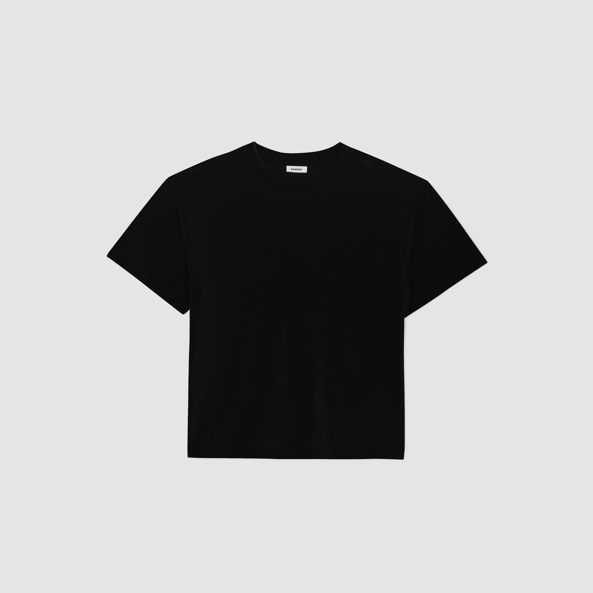 Oversized cotton T-shirt with round neck and short sleeves. Sandro Men's cotton T-shirt Round neck Short sleeves The model is 187 cm / 6'1 tall and wears a size M / 10 UK COMPOSITION Main fabric: 100% cotton Rib: 100% cotton Reference: SHPTS01480_20