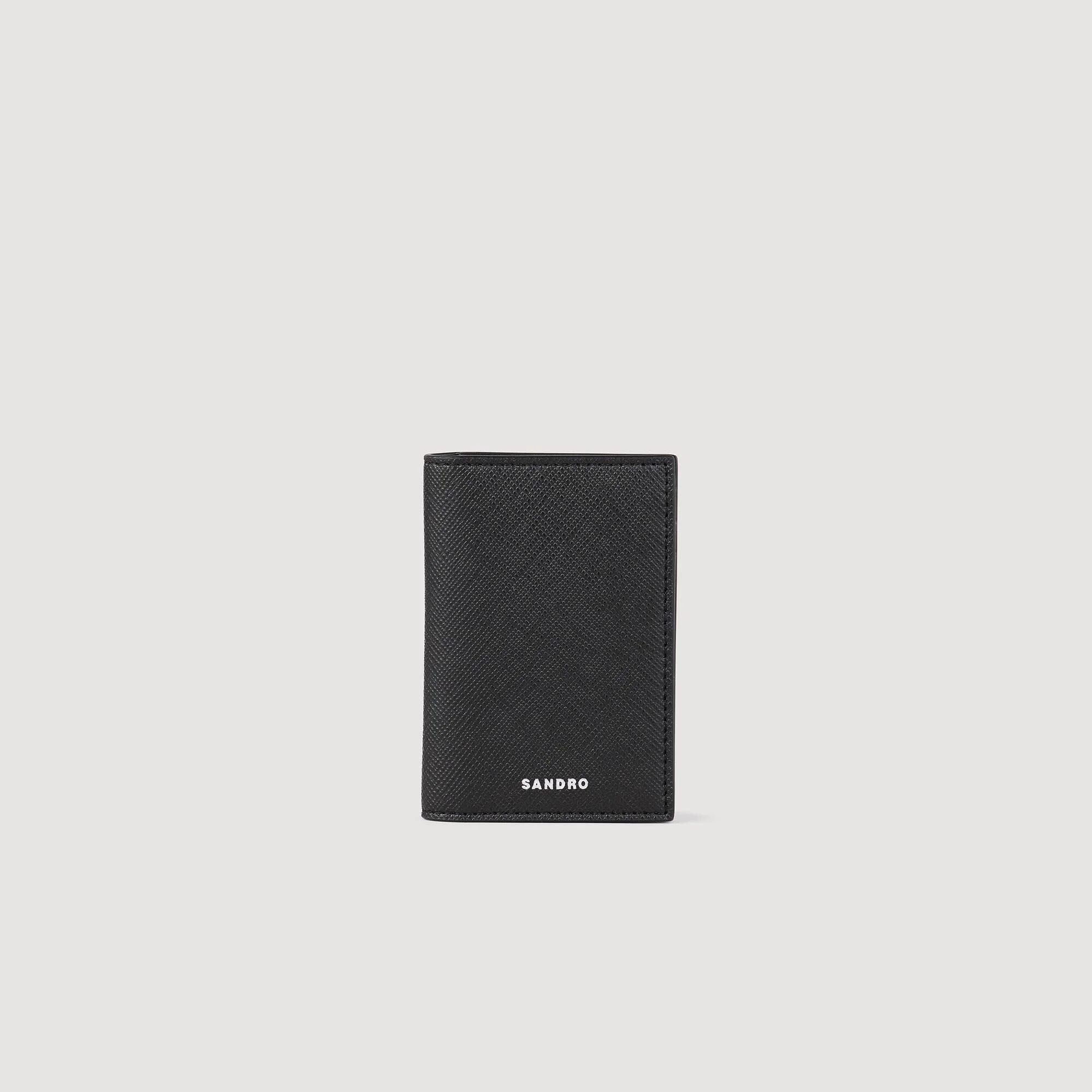 Reconstitued leather flap wallet with 6 card compartments and a large central compartment. - Sandro Men's wallet - Reconstituted leather - 6 card compartments - 1 central compartment - Embossed SANDRO logo Reference: SHAPM00258 COMPOSITION & CARE Composition - Main material: 100% synderm - Coating: 100% polyurethane - Body lining: calfskin leather - Pocket lining: 100% polyester Care advice - Do not wash - Do not bleach - Do not tumble dry - Do not iron - Do not dry clean
