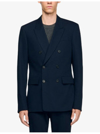 PRODUCT DETAILS - Sandro wool jacket - 100% wool - Exposed button fastening at front - Regular fit, lapel collar, long sleeves, two flap pockets at the side, double-breasted silhouette - Dry clean - Model is 6ft 1in/1.85m and wears a size medium - Midweight, non-stretch Ref: R04520397