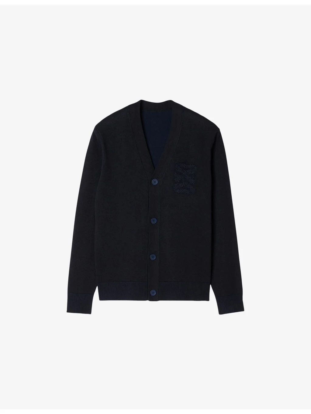 PRODUCT DETAILS - Sandro knitted cardigan - 62% viscose, 38% polyamide - Exposed button fastening at front - Regular fit, V-neck, rope-effect embroidery at the chest, long sleeves - Hand wash - Model is 6ft/1.83m and wears a size medium - Midweight, non-stretch Ref: R04505979