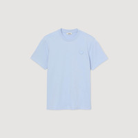 Round-neck, short-sleeved T-shirt with a PU Heart patch on the chest. - Sandro Men's cotton T-shirt - Round neck - Short sleeves - PU Heart patch on chest - Embroidery - True to size Reference: SHPTS01678_40 COMPOSITION & CARE Composition - Main fabric: 100% cotton - Rib: 100% cotton Care advice - Gentle cycle 30° - Do not bleach - Do not tumble dry - Iron at a maximum temperature of 110°C without steam - Do not dry clean