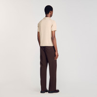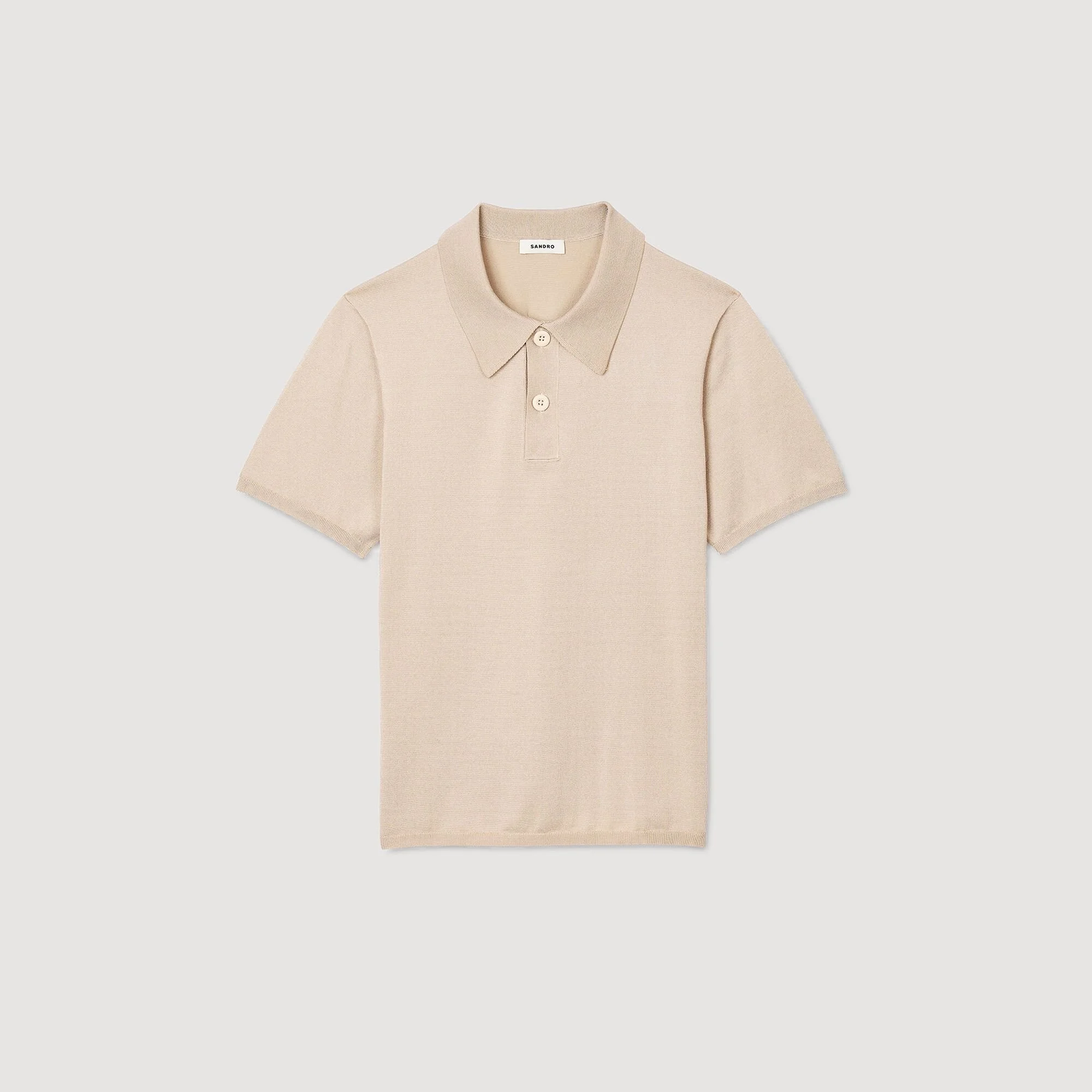 Knitted polo shirt with a button-up collar and short sleeves. - Sandro Men's knitted polo shirt - Polo collar - Two buttons on the front - Short sleeves - Straight cut - True to size Reference: SHPTR00382_A438 COMPOSITION & CARE Composition - Main fabric: 82% acetate, 15% polyamide, 3% elastane - Collar: 70% acetate, 25% polyamide, 5% elastane - Rib: 82% acetate, 15% polyamide, 3% elastane Care advice - Hand wash - Do not bleach - Do not tumble dry - Iron at a maximum temperature of 110°C without steam - F - Professional dry clean, with hydrocarbon solvent, normal treatment
