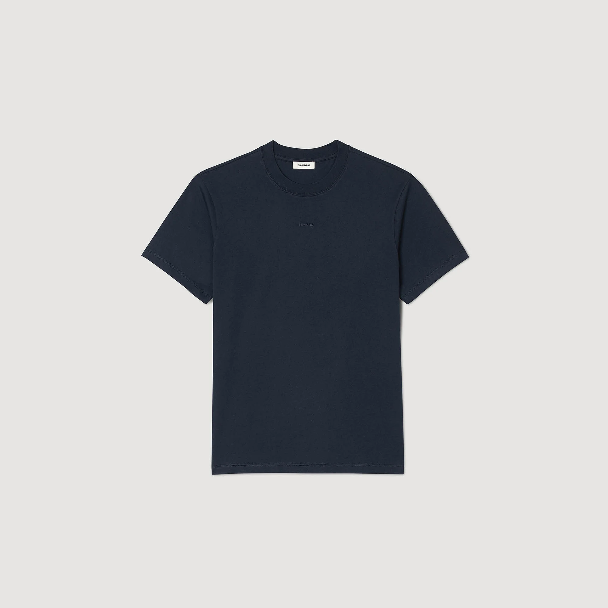 T-shirt with a round neck and short sleeves decorated with SANDRO embroidery. Sandro Men's T-shirt Ribbed round neck Short sleeves Sandro embroidery The model is 185 cm / 6'1 tall and wears a size M / 10 UK COMPOSITION Main fabric: 100% cotton Rib: 100% cotton Reference: SHPTS01387_44