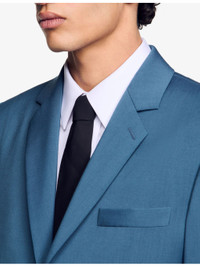 PRODUCT DETAILS - Sandro wool blazer - 100% wool - Button fastening - Regular fit, single-breasted, notch lapels, long sleeves, buttoned cuffs, side pockets - Dry clean - True to size - Model is 6ft 2in/1.88m and wears a size UK 38 - Midweight, non-stretch Ref: R04416810
