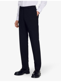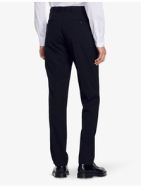 PRODUCT DETAILS - Sandro wool trousers - 100% wool; belt lining: 65% polyester, 35% cotton; trouser lining: 100% polyester; pocket lining: 65% polyester, 35% cotton - Button and zip-fly fastening - Slim fit, tapered-leg, mid-rise, belt loops, pockets at sides, piped pockets at back - Dry clean - Model is 6ft/1.83m and wears a size medium - Midweight, slight stretch Ref: R03947859