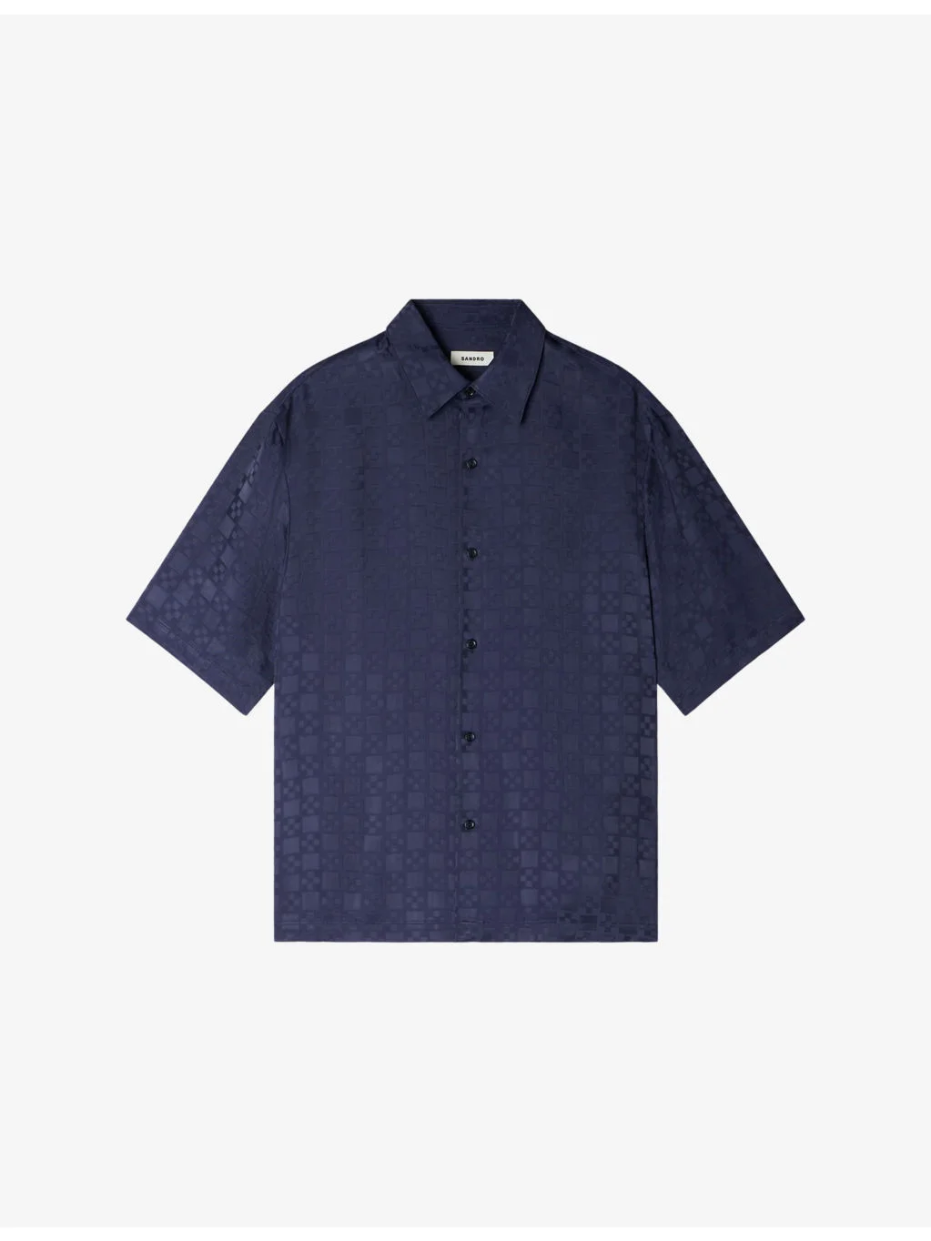 PRODUCT DETAILS - Sandro woven shirt - 100% viscose - Exposed button fastening at front - Relaxed fit, regular collar, short sleeves, all-over square cross print - Dry clean - Model is 6ft 1in/1.85m and wears a size medium - Lightweight, non-stretch Ref: R04603784