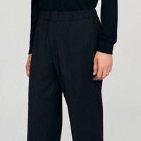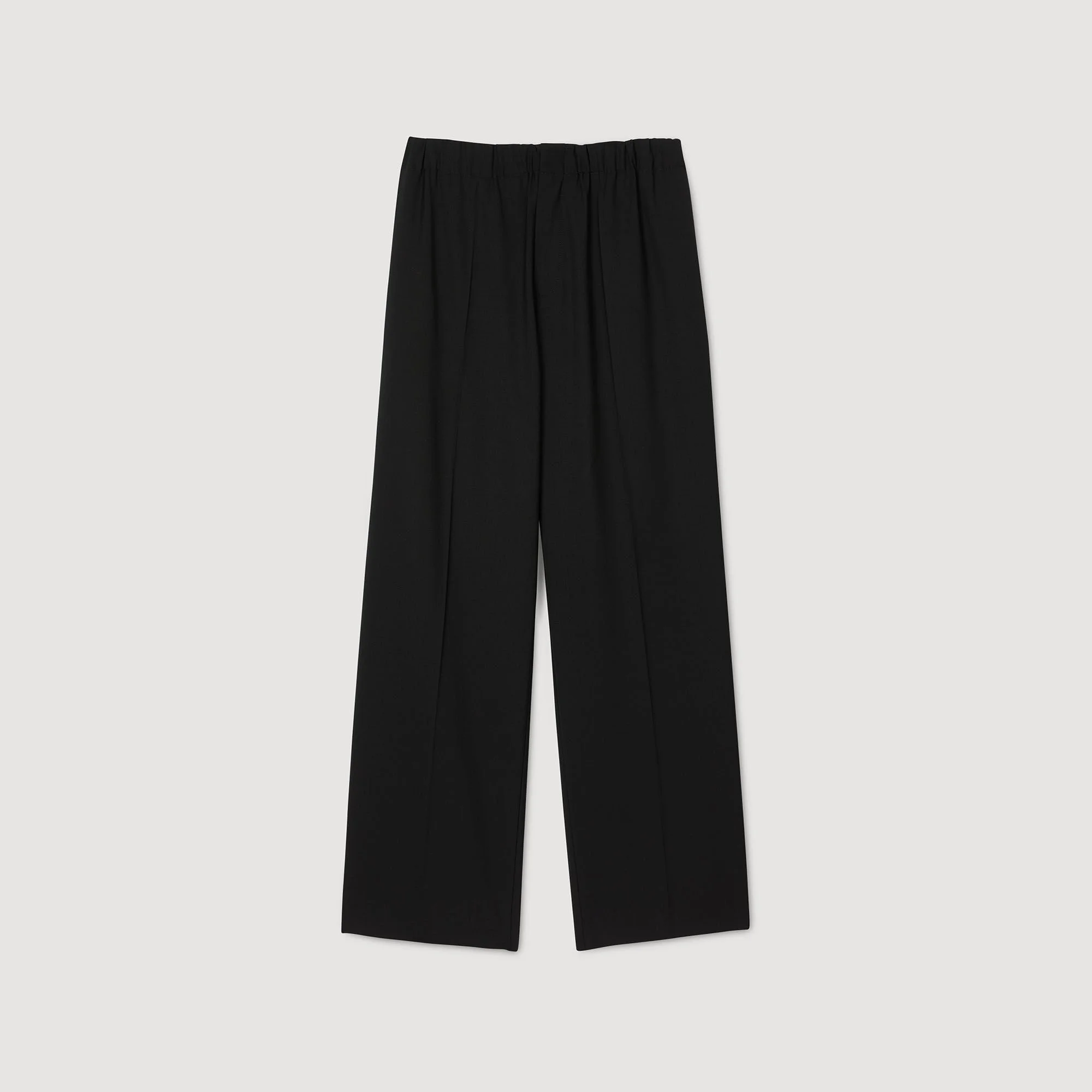 Wide-leg trousers with elasticated waistband and side pockets. - Sandro Men's wide-leg trousers - Elasticated waist - 2 pockets - Back pockets Reference: SHPPA01633_20 COMPOSITION & CARE Composition - Main material: 70% wool, 28% polyester, 2% elastane - Pocket lining: 100% cotton Care advice - Do not wash - Do not bleach - Do not tumble dry - Iron at a maximum temperature of 110°C without steam - F/ - Professional dry clean, with hydrocarbon solvent, gentle treatment