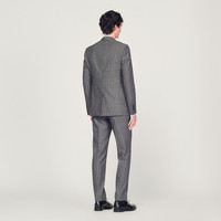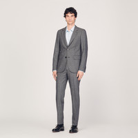 Virgin wool suit jacket with a classic cut, fastened with 2 buttons. • Sandro Men's suit jacket • Classic cut • Long sleeves • Fastened with 2 buttons • 4 buttons on the ends of the sleeves • Vent at the back • 2 pockets • Internal pockets This jacket has matching pants Model is wearing a size S and measures 185 cm Reference : SHPVE00686 MATERIALS Main fabric: 100% virgin wool Body lining: 55% polyester, 45% viscose Pocket lining: 65% polyester, 35% cotton