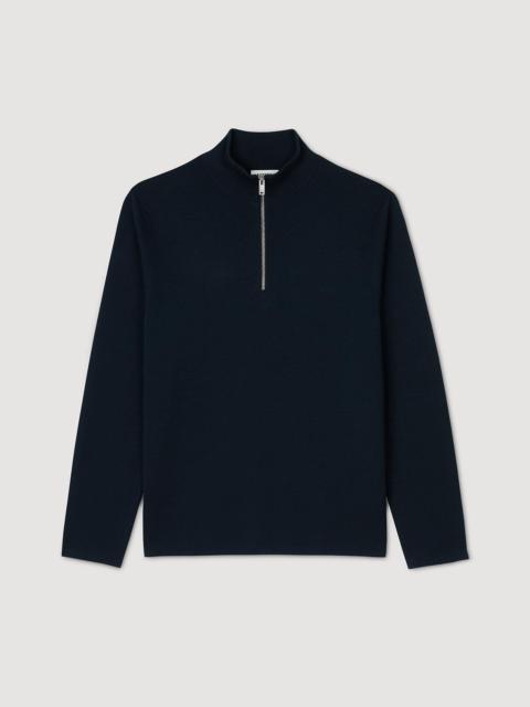 Sandro men's sweater • Knitted sweater with high neck • 100% wool • Zip at the collar • Ribbed trim finish Model is wearing a size S and is 6'1'' The wool in this item comes from extensive farming, which respects animal welfare and contributes to the preservation of local biodiversity. The model is 187 cm / 6'1 tall and wears a size S / 8 UK COMPOSITION Main fabric: 100% wool Collar: 90% wool, 9% polyamide, 1% elastane Reference: SHPTR00161_B224