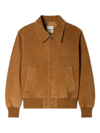 zip-up jacket Highlights - Cognac brown - Ribbed trim - Front zip fastening - Pointed collar - Panelled design - Front welt pockets Imported Composition Lining: Viscose 100%, Cotton 100% Outer: Goat Skin 100% Washing instructions Do Not Wash/Do Not Dry Clean