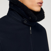 Long-sleeved jacket with shirt collar, zip fastening, welt front pockets, inverted pleat at the back and zipped inside pocket. - Sandro Men's jacket - Zip fastening - Long sleeves - Welt pockets - Inverted pleat - Inner lining - Inside pocket Reference: SHPBL01036_44 COMPOSITION & CARE Composition - Main fabric: 70% wool, 20% polyamide, 10% cashmere - Lining: 100% viscose - Removable upper collar: 100% shearling - Pocket lining: 100% cotton - Padding: 100% polyester - Rib: 49% acrylic, 45% wool, 5% polyamide, 1% elastane Care advice - Do not wash - Do not bleach - Do not tumble dry - Iron at a maximum temperature of 110°C without steam - F/ - Professional dry clean, with hydrocarbon solvent, gentle treatment