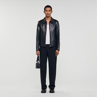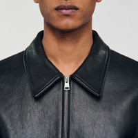 Goatskin leather jacket with wing collar, zip fastening, long sleeves with cuffs and piped pockets. - Sandro Men's leather jacket - Classic fit - Wing collar - Long sleeves with zip cuffs - Zip fastening - Piped pockets - True to size Reference: SHPBL01017_20 COMPOSITION & CARE Composition - Main material: goatskin leather - Lining: 100% polyester - Pocket lining: 100% cotton Care advice - Do not wash - Do not bleach - Do not tumble dry - Do not iron - Do not dry clean