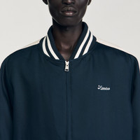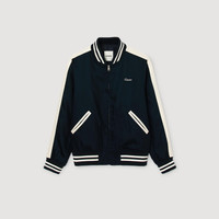 College-style varsity jacket with contrast stripes, zip fastening, long sleeves and signature embroidery on the chest. - Sandro Men's varsity jacket - Teddy collar - Long sleeves - Zip fastening - Front welt pockets - Ribbed trims at collar, cuffs and hem - Sandro embroidery on the chest - Designed for a loose fit Reference: SHPBL01106_44 COMPOSITION & CARE Composition - Main material: 67% lyocell, 33% viscose - Lining: 100% viscose - Pocket lining: 100% cotton - Rib: 98% polyester, 2% elastane Care advice - Do not wash - Do not bleach - Do not tumble dry - Iron at a maximum temperature of 110°C without steam - F/ - Professional dry clean, with hydrocarbon solvent, gentle treatment