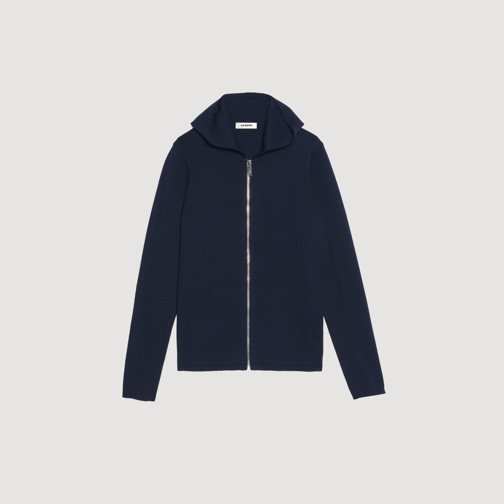 Sandro men’s cardigan • Zipped cardigan with hood • 100 % wool • Pockets at the front • Model is wearing a size S The model is 187 cm / 6'1 tall and wears a size S / 8 UK COMPOSITION Main fabric: 100% wool Reference: SHPTR00101_44