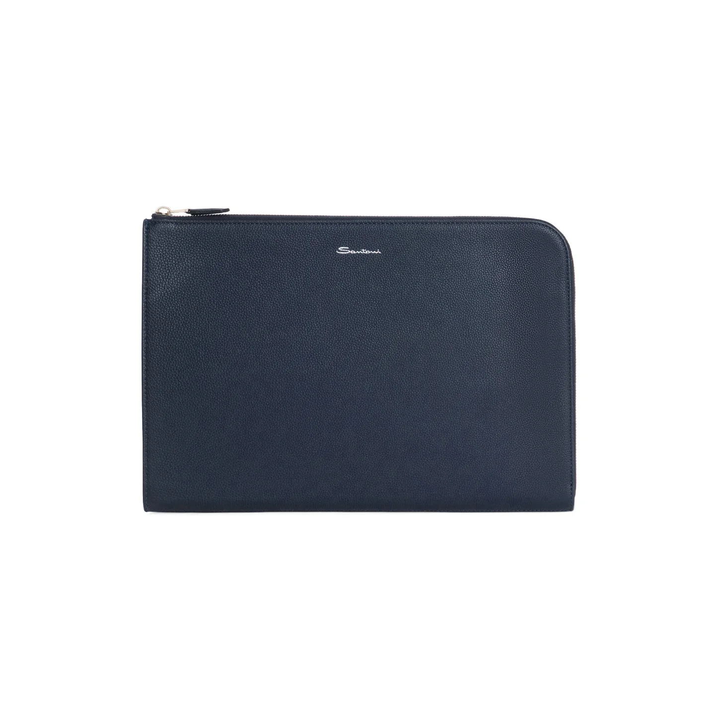 A refined accessory that exudes Santoni’s devotion to quality and perfection in every detail. Crafted from tumbled leather, this pouch can be used to guard important documents or as a tablet sleeve. Complete with a secure zip closure. Product details Product ID: UFPPA2519FOASIWU55 - Crafted from tumbled leather - Color: blue - Zip closure - Debossed Santoni logo on the front - Made in Le Marche, Italy