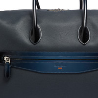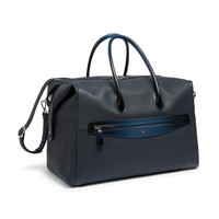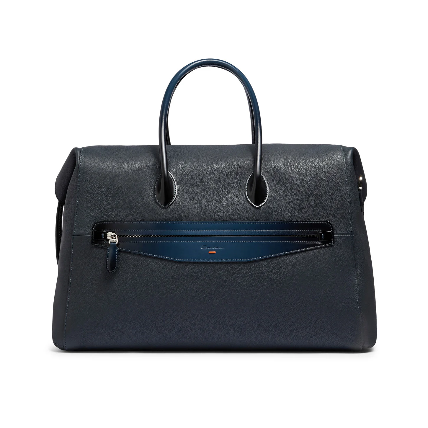 Showcasing a light, deconstructed silhouette, this Santoni bag brings refined elegance to off-duty looks and weekend trips. Its tumbled leather construction boasts a luxuriously tactile feel, elevated with padded handles and a detachable shoulder strap. Zip pockets on the inside and outside keep everything safe and organised. Product details Product ID: UIBBA2646BSACSUU55 - Crafted from tumbled leather - Color: blue - Padded handles - Two-way zip closure - Inside zip pocket - Front zip pocket - Adjustable and detachable shoulder strap - Charm with decorative key - Debossed Santoni logo - Dimensions: 45,5cm x 28cm x 26cm - Made in Le Marche, Italy
