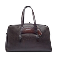 This men’s bag is a must-have for weekends away and business trips. Its elegant embossed leather design is styled with top handles and a distinctive flap, recalling the iconic lines of our signature double-buckle shoe. Complete with a detachable shoulder strap for optimal versatility. Product details Product ID: UIBBA2419ENAOP2T50 - Men’s weekend bag - Crafted from embossed leather - Color: dark brown - Padded handles and double-buckle-inspired flap - Zip closure - Two inside compartments - Inside zip pocket - Adjustable and detachable shoulder strap - Decorative key - Printed Santoni logo - Made in Italy