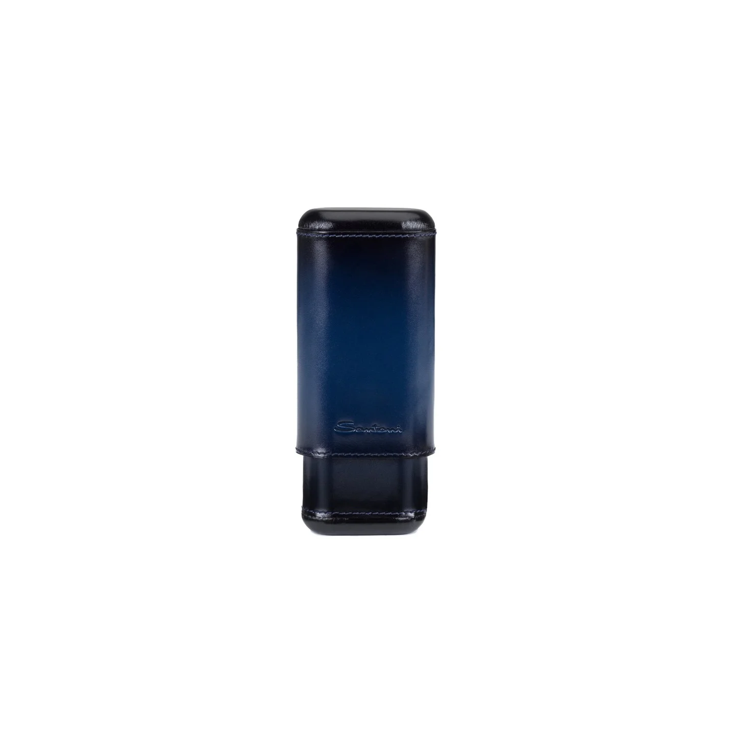 A refined gift idea and a symbol of discreet luxury: this Santoni cigar case brings beauty to the everyday. Its fine cedar wood design is wrapped in leather that showcases the chromatic charm of our prestigious “velatura” technique: a hand-applied gradated finish. Product details Product ID: UFPPA2941FOXNVEU46 - Made from cedar wood - Covered in leather - Treated with Santoni’s “velatura” color-grading technique - Color: blue - Debossed Santoni logo on the front - Made in Le Marche, Italy