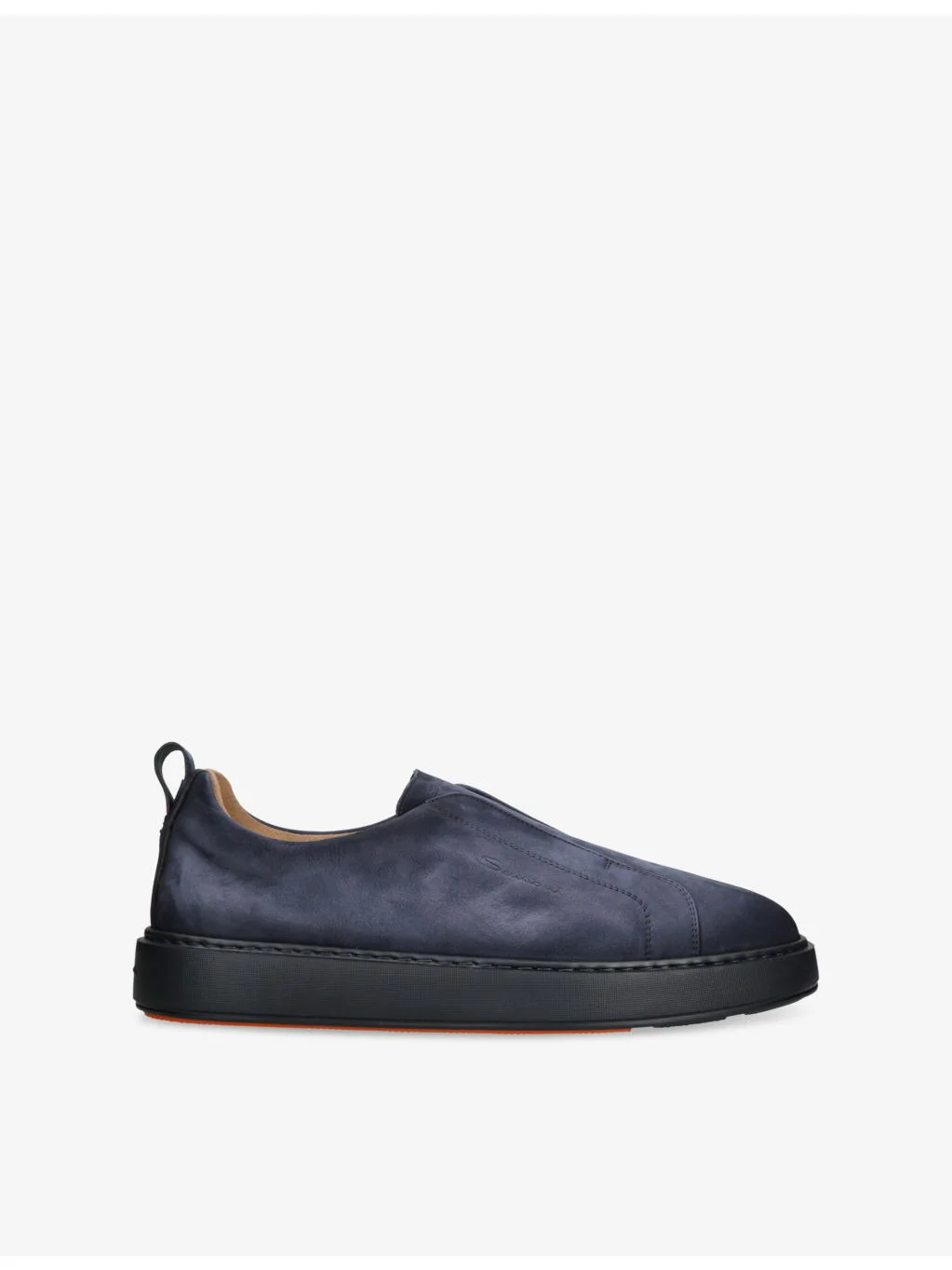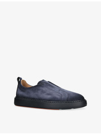 PRODUCT DETAILS - Santoni nubuck-leather trainers - 100% leather - Closed round toe, low-top silhouette, embossed branding at side and tongue, pull-tab at back, rubber cupsole - Specialist leather clean - Made in Italy - Upper: 100% leather - Lining: 100% leather - Sole: 100% rubber Ref: R04473810