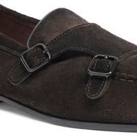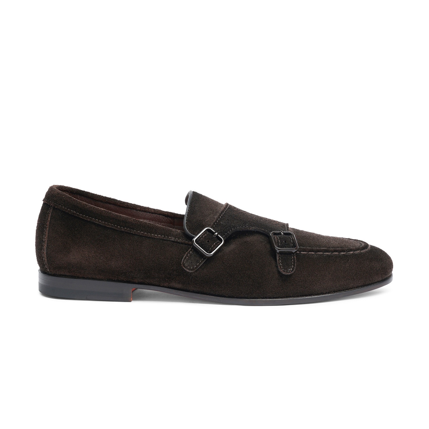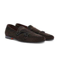 Santoni’s iconic codes are interspersed with modern details to give the men’s footwear icon a sophisticated update. Crafted from luxuriously soft suede, this double-buckle shoe is elevated with domed stitching to accentuate its elegant lines and tonal enamelled buckles for a clean aesthetic. Designed with a Goodyear welt construction for an ultra-soft, flexible feel. Product details Product ID: MCNC18003SA4SEGST44 - Men’s double-buckle shoe - Crafted from suede - Colour: brown - Raised apron stitching - Tonal enamelled buckles - Classic silhouette - Goodyear welt construction - Leather sole with half rubber heel - Printed Santoni logo on the insole - Made in Italy
