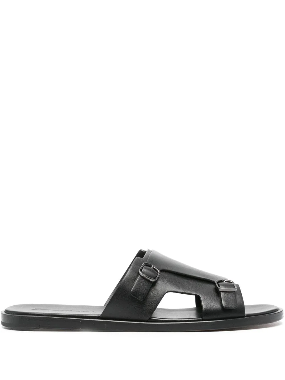 double-buckle leather sandals Highlights - Black - Calf leather - Smooth grain - Almond open toe - Front strap with cut-out opening detailing - Double-buckle detail - Branded insole - Leather sole - Slip-on style - This piece comes complete with a protective dust bag. Made in Italy Composition Outer: Calf Leather 100% Sole: Calf Leather 100% Lining: Calf Leather 100% SIZE & FIT Measurement HEEL 0.59 in(1.5 cm)