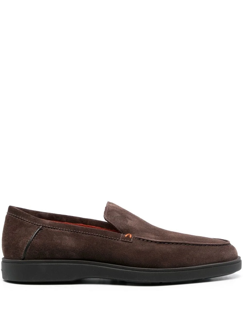 Drain suede loafers brown suede almond toe tonal stitching rubber sole Made In Italy Composition Sole: Rubber 100% Lining: Fabric 100%, Polyurethane 100% Outer: Calf Suede 100% SIZE & FIT Measurement HEEL 1.18 in(3 cm) Sole height 0.78 in(2 cm)