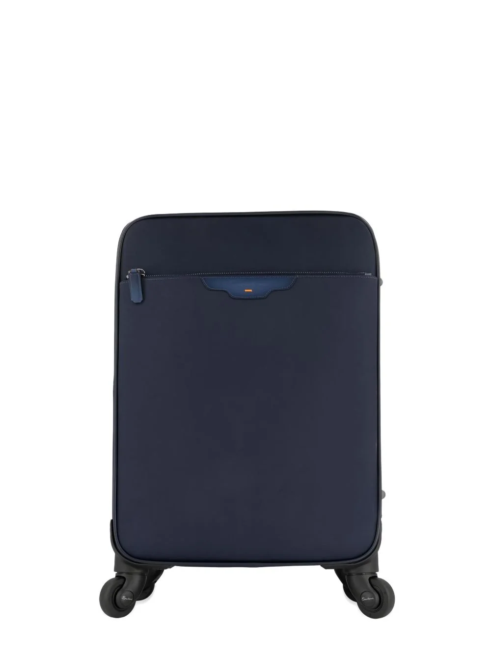 four-wheels trolley Highlights - Navy blue - Top handle - Four wheels - Front zip pocket - Zipped closure - Logo detail Imported Composition Nylon 100%