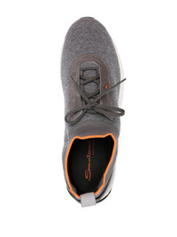 knitted sneakers Highlights - Medium grey - Knitted construction - Melange effect - Front lace-up fastening - Leather panel to the back - Logo pull-tab at the heel - Ribbed ankle - Contrasting trim - Round toe - Branded leather insole - Flat rubber sole Made in Italy Composition Outer: Calf Leather 100%, Fabric 100% Lining: Fabric 100%, Calf Leather 100% Sole: Rubber 100% SIZE & FIT Measurement HEEL 1.57 in(4 cm) Sole height 0.78 in(2 cm)