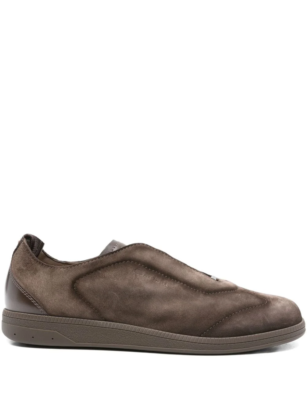 leather slip-on sneakers Highlights - Brown - Calf leather - Elasticated insert - Suede effect - Flat sole - Round toe Made in Italy Composition Lining: Calf Leather 100% Sole: Rubber 100% Outer: Calf Suede 100%