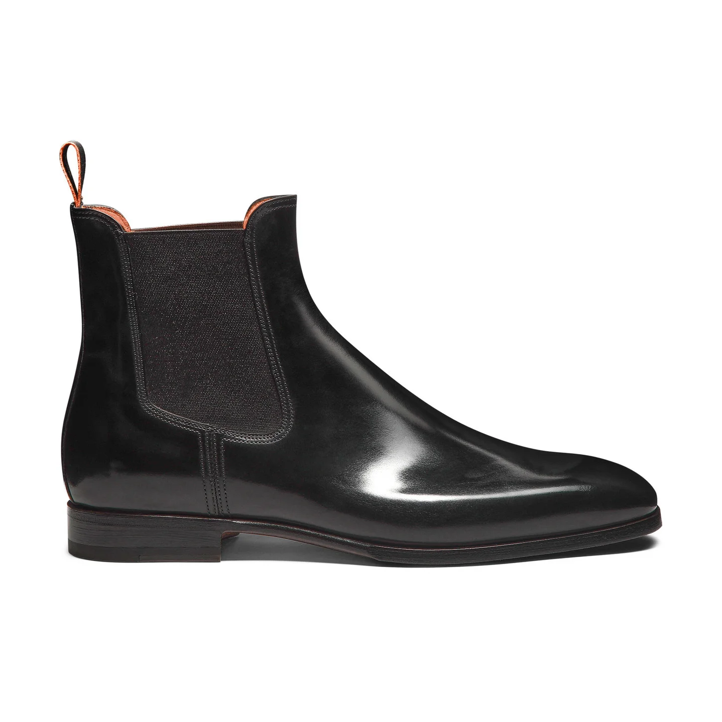 From office to evening, this Chelsea boot is an elevated yet easy-to-wear essential for endless occasions. Every detail of its fine leather construction is meticulously hand-finished to combine unwavering elegance with modern practicality. Elasticated side inserts and a rear pull tab make it easy to slip on and off, while a signature Arancio Santoni leather sole signs off the look with an exclusive touch. Product details Product ID: MCAD19113JJ6GNTGN01 - Crafted from leather - Color: black - Classic tapered silhouette - Elasticated side inserts - Logo tape pull tab - Leather sole with rubber toe and half-heel - Printed Santoni logo on the insole - Made in Le Marche, Italy