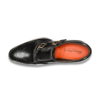 Hand-crafted from fine leather in our artisan workshops, this double-buckle shoe is an emblem of Santoni style. Bringing charming elegance to business and black-tie ensembles, it is at once sleek, refined and impeccably detailed. Enriched with delicate perforations that reinterpret quintessential British brogue detailing with a sophisticated edge. Product details Product ID: MCCR19150MC8HVVDN01 - Crafted from leather - Color: black - Brogue detailing - Classic tapered silhouette - Gold metal double buckle closure - Goodyear welt construction - Leather sole with half rubber heel - Printed Santoni logo on the insole - Made in Le Marche, Italy