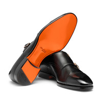 A charming stylistic language rewrites the iconic lines of the double-buckle shoe. This iteration is specially designed to bring refined elegance to more formal looks, crafted from the finest leather. Finished with stitching on the toe and an orange leather sole to mark every stride with the iconic allure of our classic Arancio Santoni. Product details Product ID: MCAD19027JC6BNTGN01 - Crafted from leather - Color: black - Double buckle - Seam across the toe - Classic tapered silhouette - Leather sole with half rubber heel - Printed Santoni logo on the insole - Made in Le Marche, Italy
