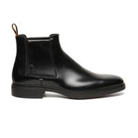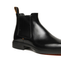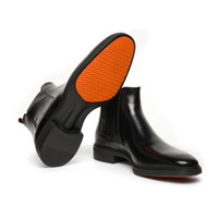 This unique Chelsea boot is the beginning of a brand-new chapter in the history of Santoni’s artisanal innovation. Part of our exclusive Easy collection, it stands out with a flexible, ultra-lightweight silhouette that weighs just 295g. Its luxurious leather construction is elevated with a perforated nappa lining, a memory foam insole and a rubber sole with unique Doubling design: a decorative pattern inspired by Santoni’s signature Double Buckle detail that simultaneously ensures optimal grip and durability. Complete with hidden elastic integrated into the upper for even greater comfort. Product details Product ID: MGEO18937NEAXNTGN01 - Easy collection - Ultra-lightweight construction - Men’s Chelsea boot - Crafted from leather - Color: black - Elasticated side inserts - Round toe - Logo tape pull tab - Perforated nappa lining - Memory foam insole - Orange rubber sole with double-buckle pattern - Printed Santoni logo on the insole - Made in Italy