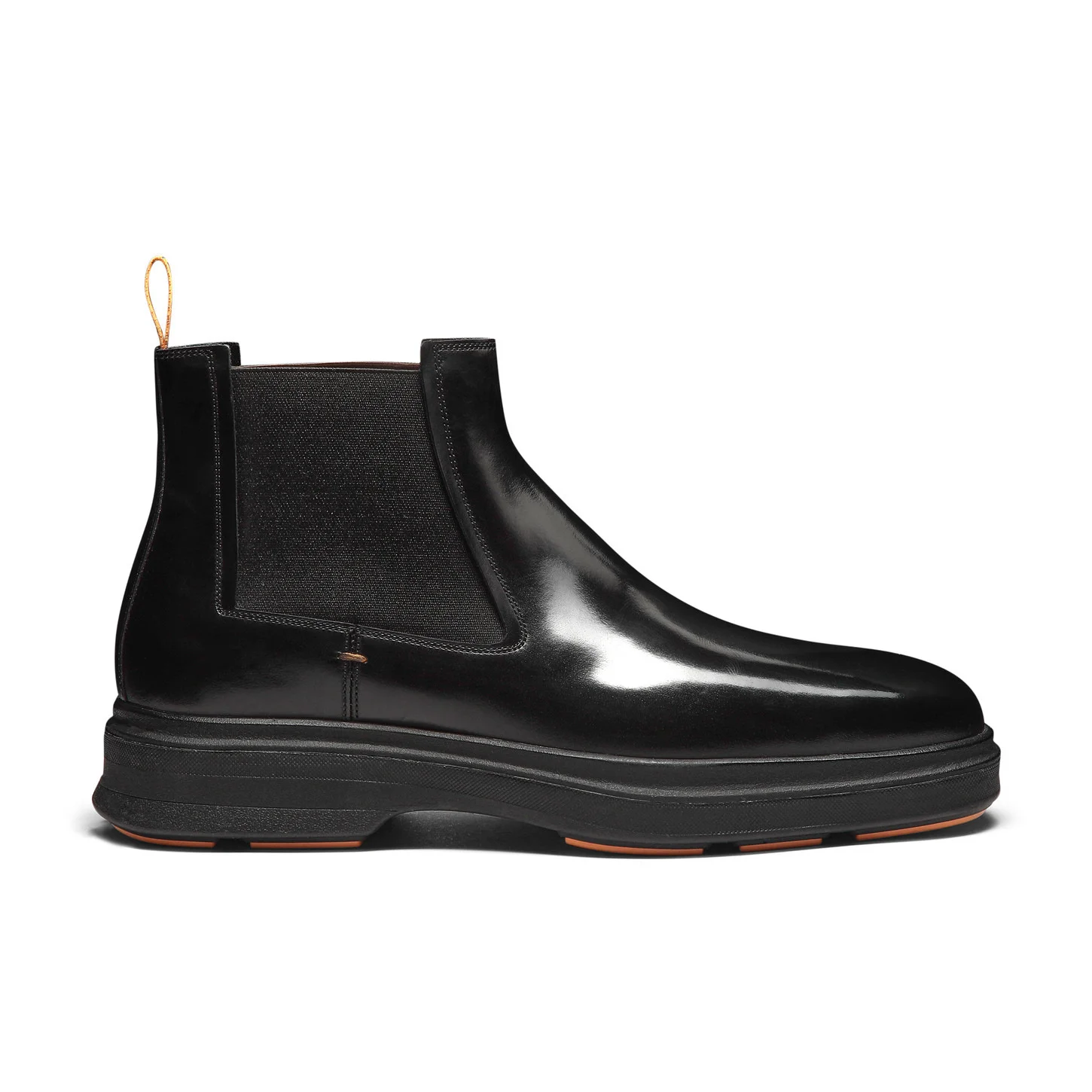 Bringing effortless elegance to your urban edit, this Chelsea boot expresses Santoni’s artisanal innovation through every detail. Part of the Easy Nova capsule, it’s characterised by revolutionary footbed technology that provides extra volume, cushioning and flex. Crafted from fine leather, the design is distinguished by a radiant flash of Arancio Santoni on the tread and a signature logo tape pull tab. Product details Product ID: MGEF19169NEAXNTGN01 - Crafted from leather - Color: black - Elasticated side inserts - Logo tape pull tab - Ultralight chunky rubber sole - Arancio Santoni orange detail on the tread - Printed Santoni logo on the insole - Made in Le Marche, Italy