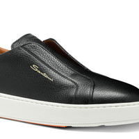 Men's black tumbled leather slip-on sneaker