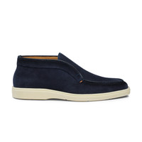 A practical design, a lightweight feel, and the meticulous attention to detail that continues to set Santoni apart from the rest. This extremely comfortable Desert Boot is made of suede and features an apron stitching. The contrasting rubber sole adds a modern touch to the look. Product details Product ID: MGDT17823TICBGEXU60 - Men's desert boot - Crafted from suede - Colour: blue - Smooth rubber sole - Made in Italy