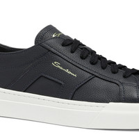 Unlined and deconstructed for an even lighter feel, this trainer is the summer take on our iconic Double Buckle Sneaker. This men's style is presented in plain tumbled leather for a sophisticated look to round of endless outfits. The side is embellished with a unique detail inspired by one of our signature codes—the double buckle—lifted from our formal shoe edit and transformed into a mark of modern style. Product details Product ID: MBGT21967PNNTSIWU55 - Men's low-top sneaker - Crafted from tumbled leather - Unlined and deconstructed - Colour: blue - Leather logo detail on the tongue and heel - Double-buckle-inspired leather side detail - Lace-up fastening - Rubber cupsole - Santoni lettering moulded into the tread - Made in Italy