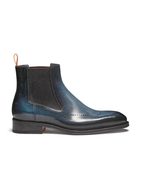 Combining classic elegance with modern allure, this Chelsea boot is an emblem of Santoni’s contemporary craftsmanship. Its fine leather construction showcases the radiant allure of our signature “velatura” gradated finish. Quintessential brogue detailing is reinterpreted through a modern lens to bring a sophisticated touch to its otherwise classic design, while a Goodyear welt construction ensures optimal resistance. Product details Product ID: MCCR19108MC8HIOTE81 - Crafted from leather - Treated with Santoni’s “velatura” color-grading technique - Color: brown - Brogue detailing - Classic tapered silhouette - Elasticated side inserts - Logo tape pull tab - Goodyear welt construction - Leather sole with half rubber heel - Printed Santoni logo on the insole - Made in Le Marche, Italy