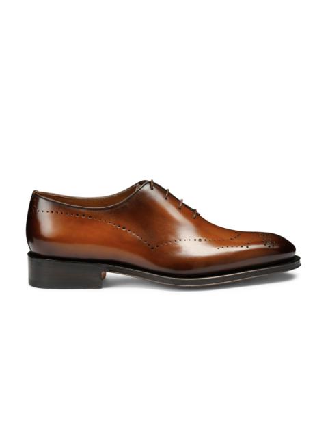 Elegant and distinctive, this Oxford lace-up is a symbol of Santoni workmanship, elevating any formal look with a luxurious touch. Its leather upper is hand-treated to create an exclusive nuanced effect, elevated with eye-catching brogue perforations. Finally, its Goodyear welt construction ensures optimal performance in terms of durability and resistance. Product details Product ID: MCCR18542MC8HFULM73 - Men’s Oxford shoe - Crafted from leather - Treated with Santoni’s “velatura” color-grading technique - Color: brown - Brogue perforations - Formal tapered silhouette - Lace-up fastening - Goodyear welt construction - Leather sole with half rubber heel - Printed Santoni logo on the insole - Made in Italy